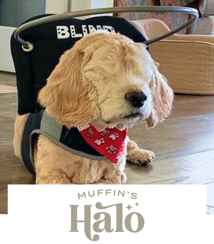 Muffin’s Halo offers patented devices that aid visually impaired dogs by preventing collisions with walls and other objects. Muffin’s Halo gives these pets confidence to navigate their surroundings.