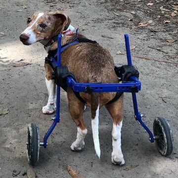 Every dog and disability are unique, so is their recovery process. We have seen varying degrees of rehabilitation with dogs using the wheelchair. Some dogs have been able to improve so much that they no longer needed the wheelchair. While your dog is in the wheelchair, they are getting physical therapy improving their physical and mental health.