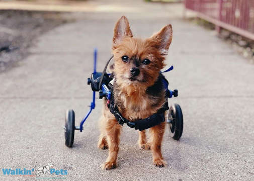 The Walkin’ Wheels Mini dog wheelchair gives your dog the support they need to live the happy, healthy life they deserve. The rear mini wheelchair features a lightweight frame and easy for even the tiniest pup to maneuver. Built specifically for teacup, mini, and toy pets, the mini rear dog wheelchair supports pets who struggle to walk due to arthritis, have weak back legs from an injury, like a cruciate injury, or paralyzed pets recovering from IVDD or a neurological condition. The mini wheelchair promotes mobility and helps pets to get the exercise they need!