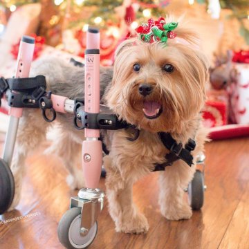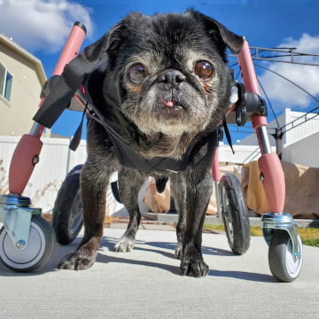 Every dog and disability are unique, so is their recovery process. We have seen varying degrees of rehabilitation with dogs using the wheelchair. Some dogs have been able to improve so much that they no longer needed the wheelchair. While your dog is in the wheelchair, they are getting physical therapy improving their physical and mental health.