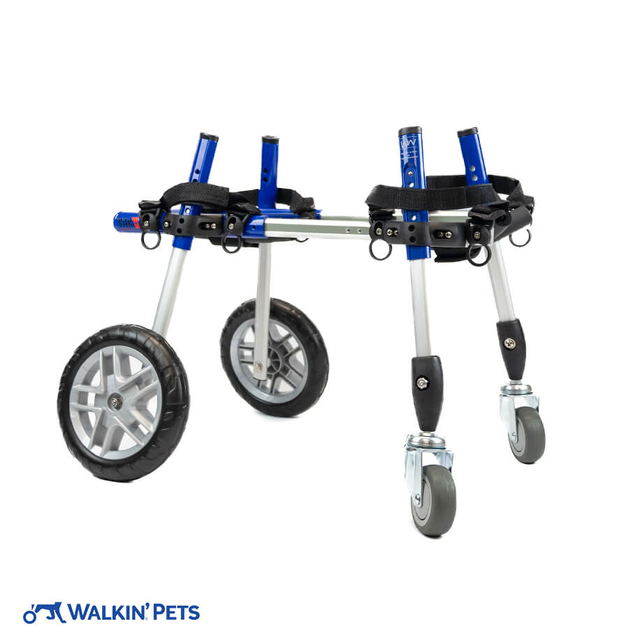 The 4-wheel small dog wheelchair features a durable, lightweight frame that adjusts in length, width, & height for the perfect fit for pets under 25 lbs.