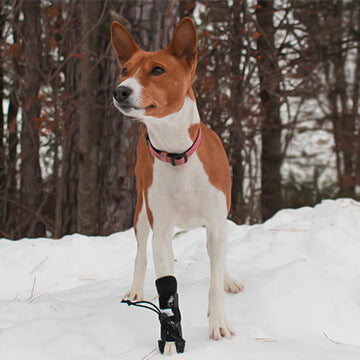 The training sock is lighter weight and will train your dog to lift their rear leg and paw higher, improving their knuckling. For dogs who drag their paws in between training sessions, the Bootie Splint can be worn to protect the paw.