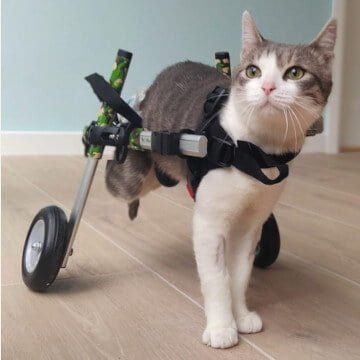 What’s more, the purpose of the wheelchair is to give the cat exercise and the freedom to go outside and do his business. When the cat is tired, you should never leave him/her in the chair.